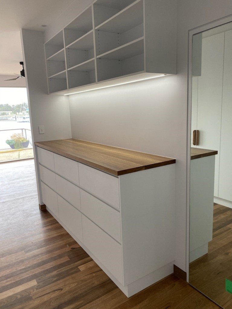 Cabinetry: Laminex 'Calm White' Natural Finish