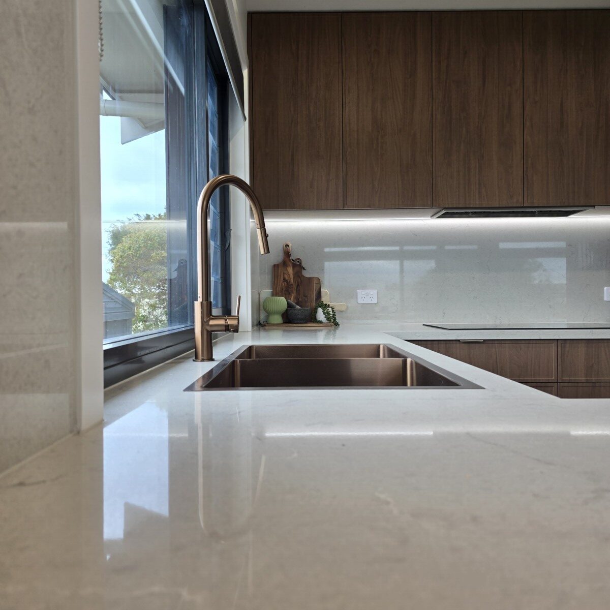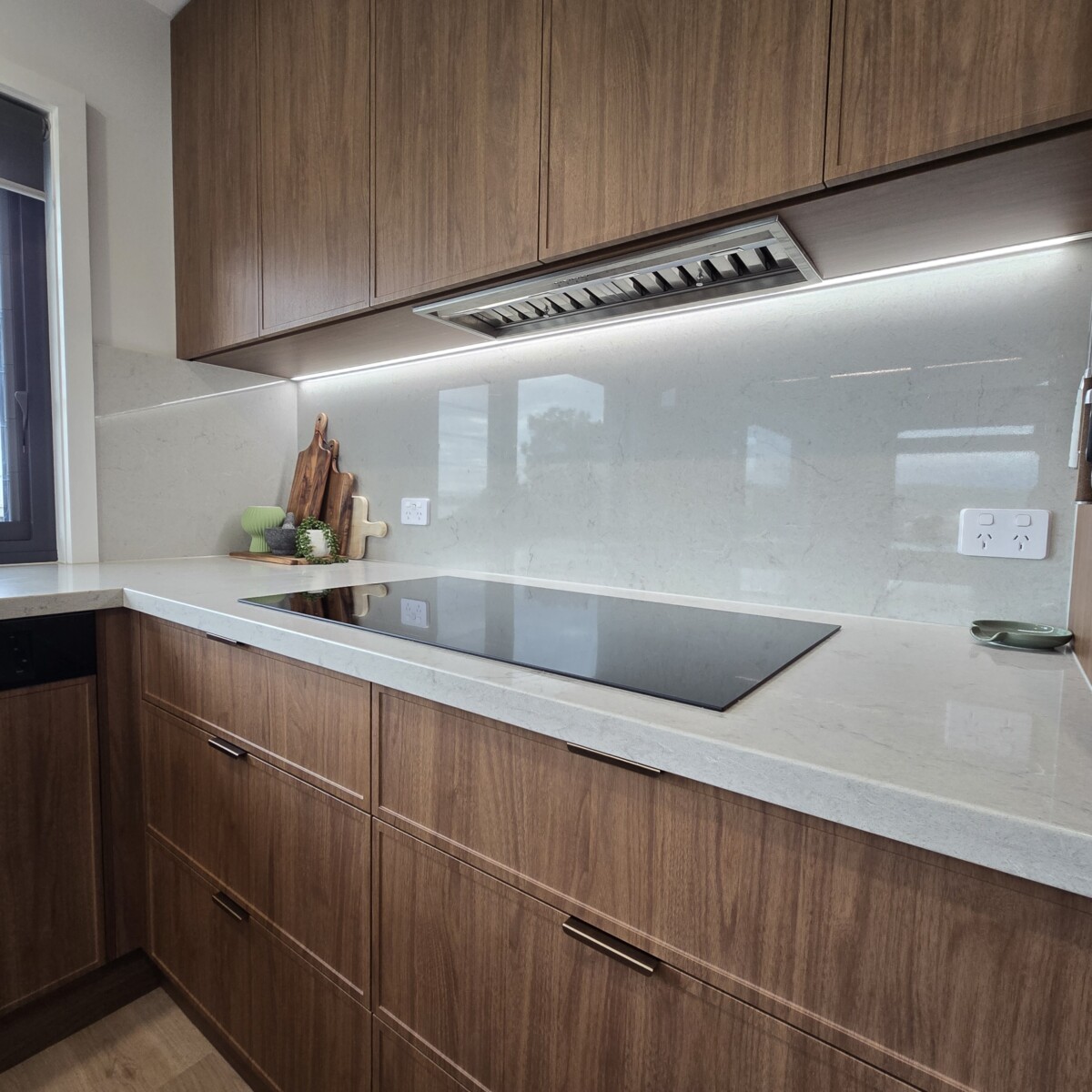 Cabinetry: Polytec, Thermolaminated 'Florentine Walnut' Sussex Profile, Woodmatt Finish