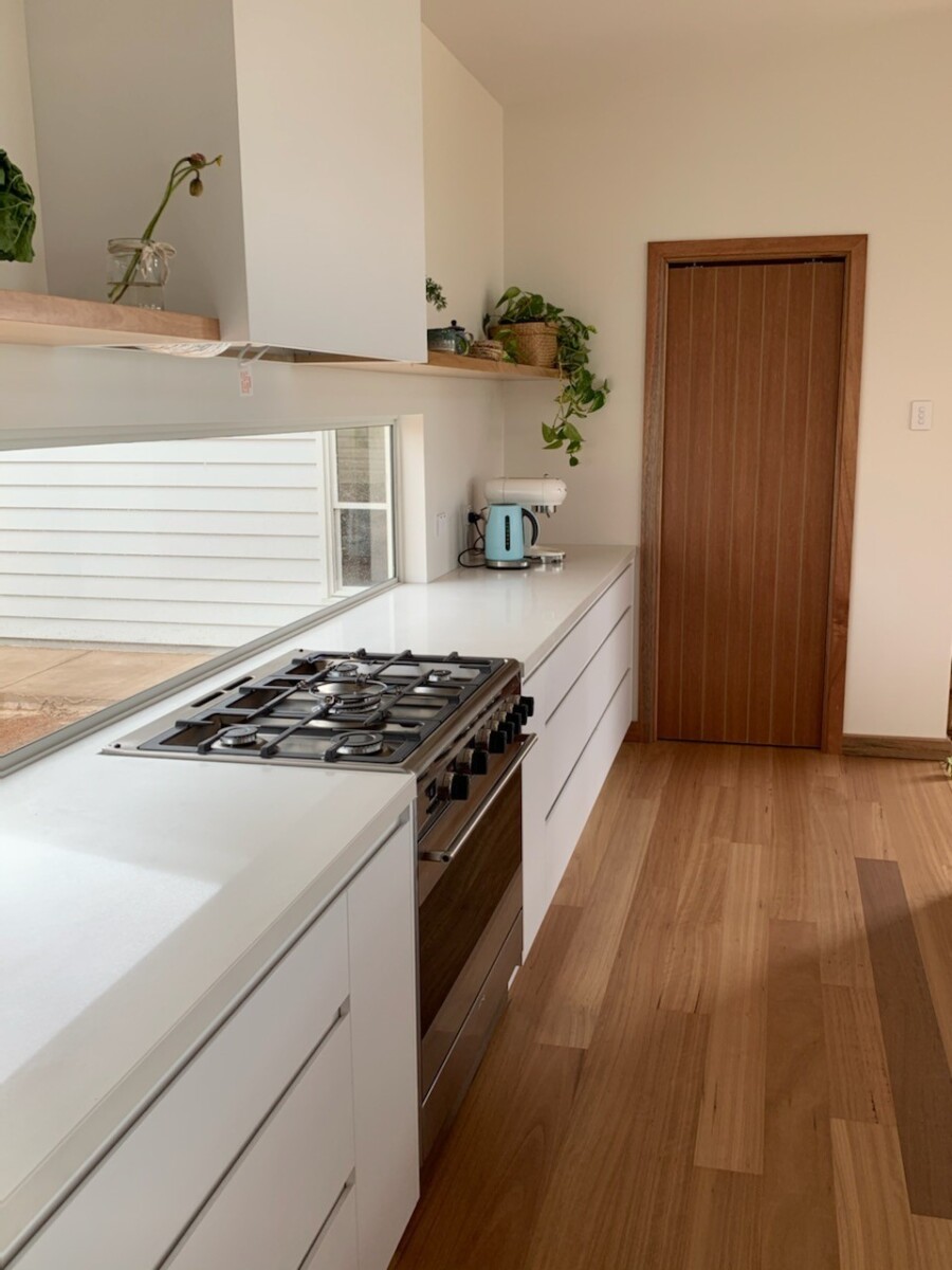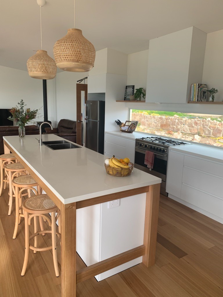 Cabinetry: Laminex 'Calm White' Natural Finish
