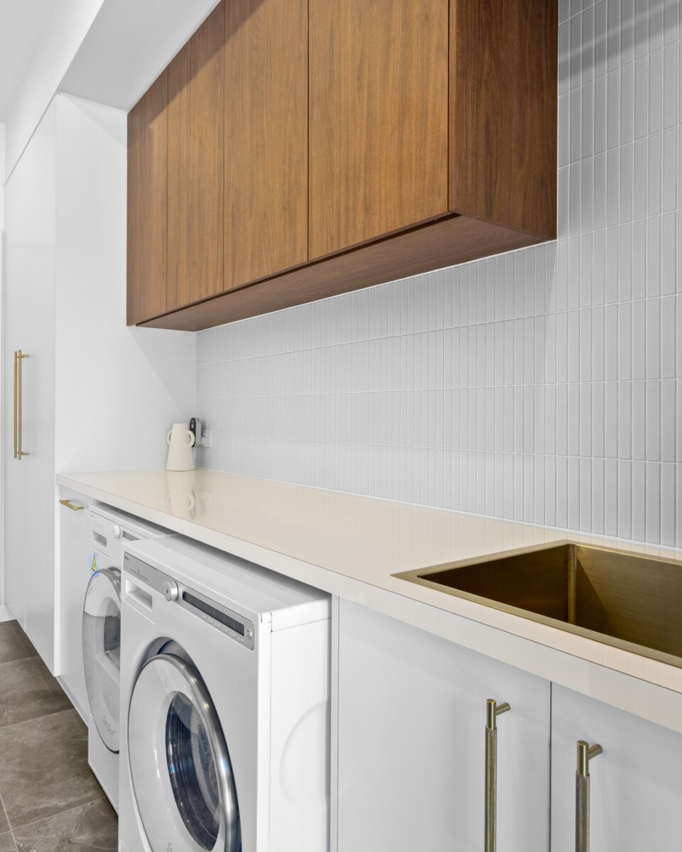 Adding warmth and texture, the timber-grain feature Overhead Shelving introduces a natural element to the design.
